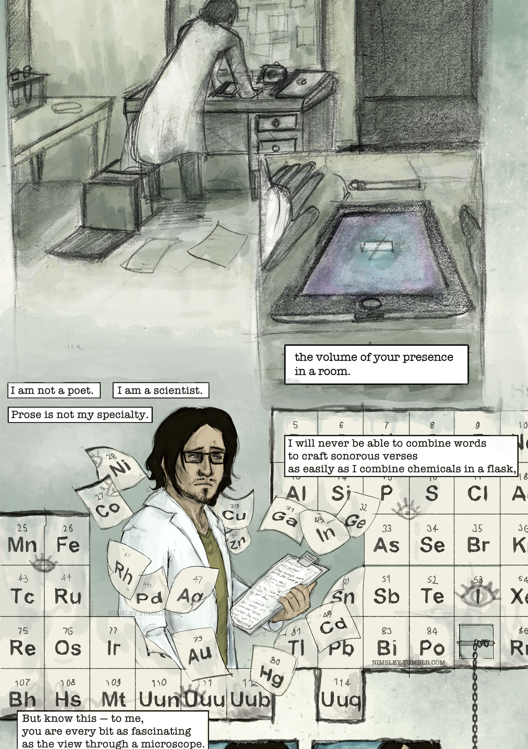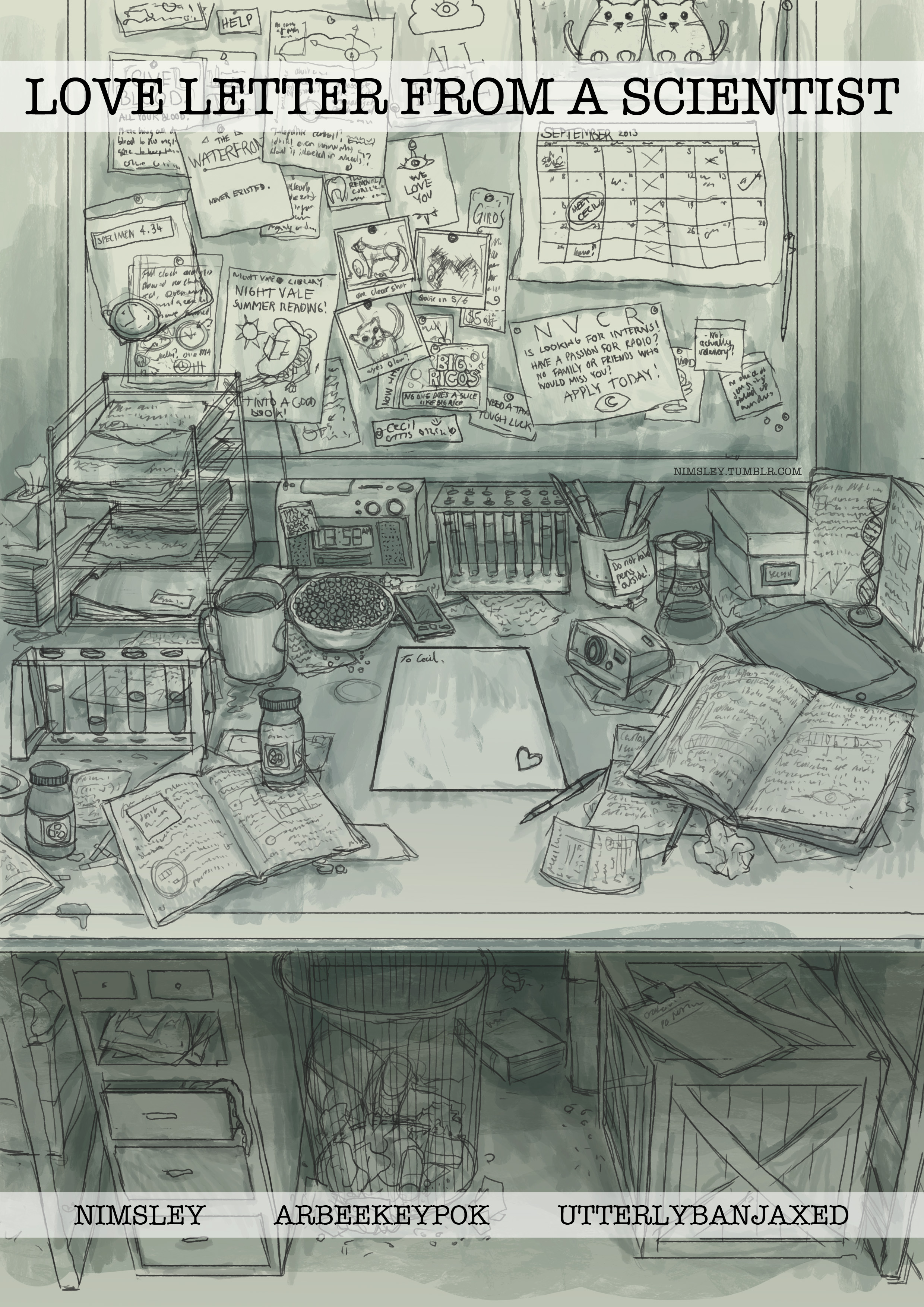 So wonderful: Love Letter from a Scientist by Utterlybanjaxed, with drawings by nimsley and Arbeekeypok.